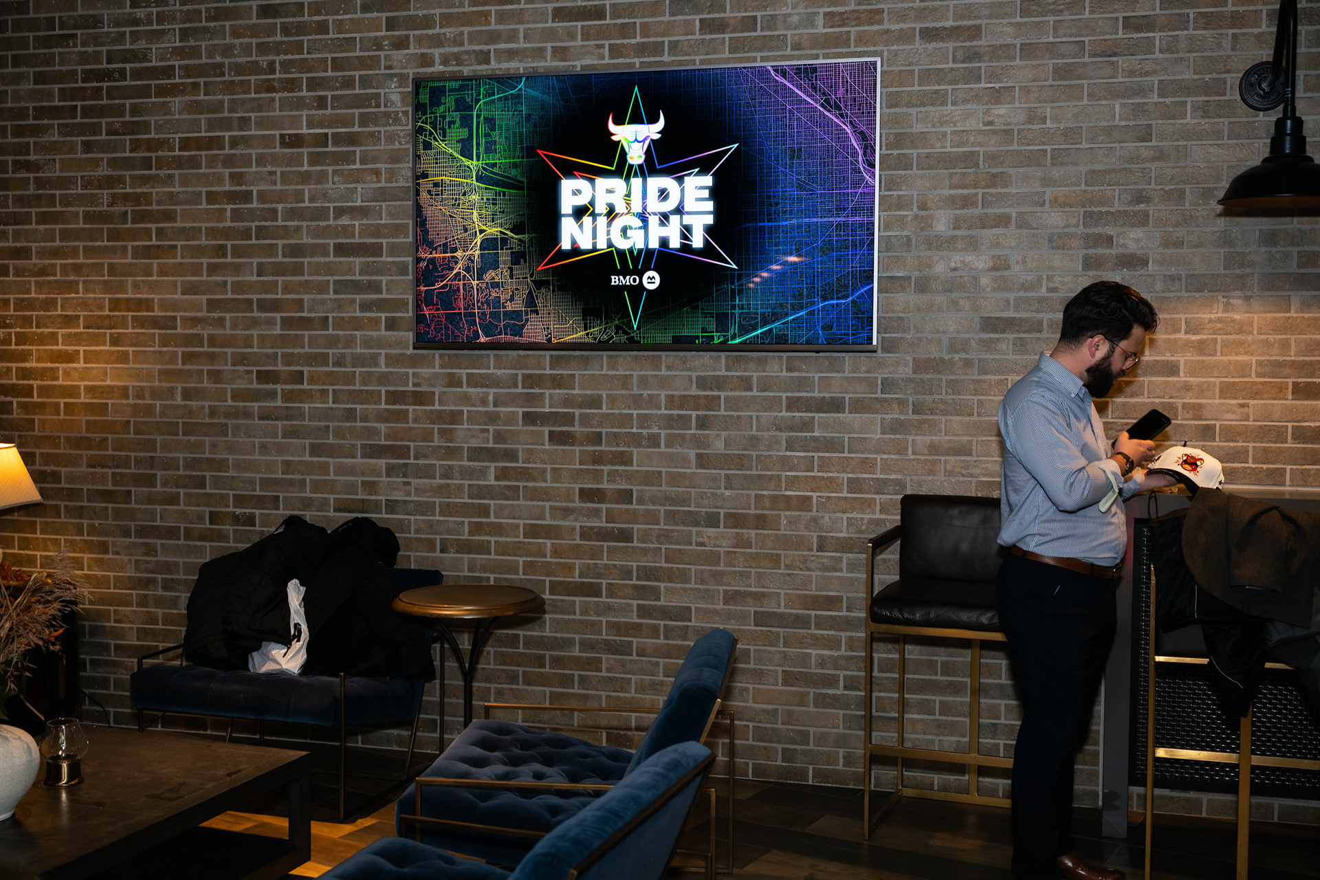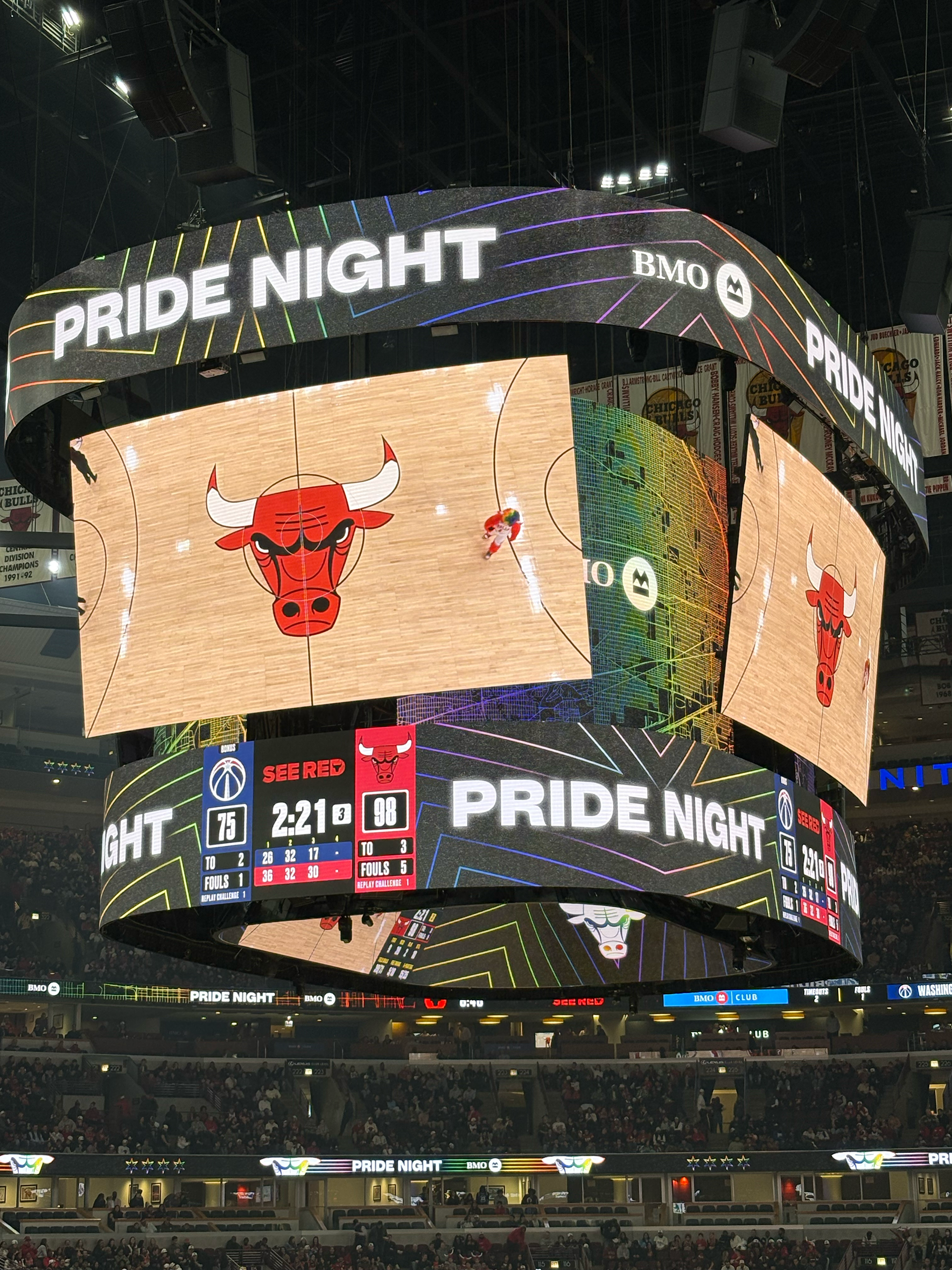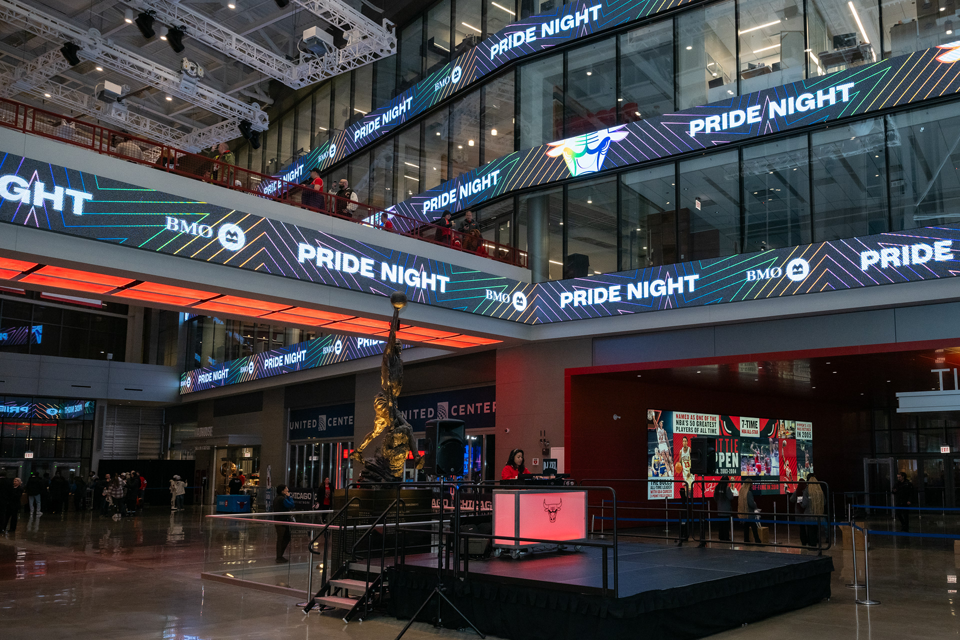 The Pride Night game graphics included cross platform paid and organic social media posts, United Center concourse/atrium displays, and in arena LEDs/socreboard graphics. In arena LED motion graphics were directed by me and animated by the United Center graphics team.
